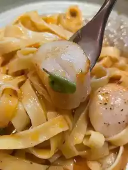 Pan-fried Hokkaido Scallops Salmon Roe Lobster Sauce Flat Pasta $238