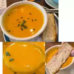 Each lunch set includes a Japanese meal soup or salad, the Japanese soup is pumpkin soup, the pumpkin soup is very thick, and served with a little sweet very soft plus a little crispy bread strips.