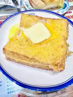 French toast is made of toast dipped in egg liquid and fried, with butter and peanut butter in the middle, topped with cream and drizzled with honey. You can smell the aroma of egg and frying when you bite it. The heat is just right with the honey, cream and peanut butter, creating an unforgettable taste.