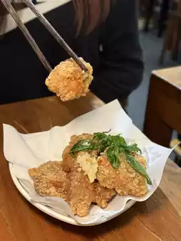 The salt and pepper chicken is crispy on the outside and soft on the inside. It's delicious with the simplest pepper and salt.