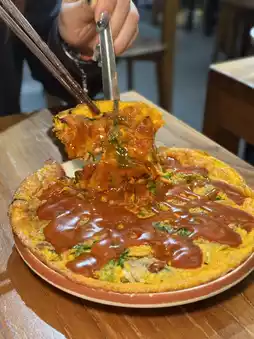 Fry on both sides until golden brown, the skin is slightly charred and crispy, the crust is smooth and bouncy, the oysters are full and not fishy, with lettuce, onion, onion and other fillings, rich taste, plus special sauce, full of Taiwanese flavor!