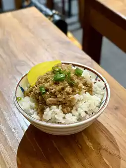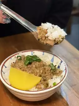 Semi-fat and lean stewed pork, tender and flavourful, with crispy melon mixed with minced meat, special taste; moderate ratio of salty and sweet stewed sauce, plus a little loose meat, rich taste; rice with pearl rice mixed with red quinoa, more healthy and softness just right, taste good.