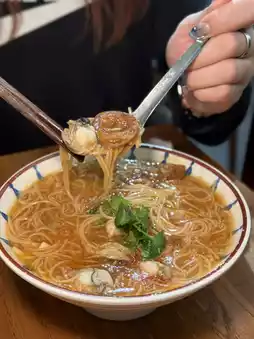 Following the traditional Taiwanese method, the noodles are made of traditional red noodle thread, which is thin and soft. The oysters are full and not fishy; the stewed large intestine is crispy and bouncy. The overall taste is thick and smooth, worth a try!