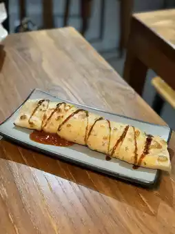 The egg tart has a thin and charred skin, a rich egg flavour, a rich filling of minced meat, and half-melted cheese. It's so evil! Served with sweet and spicy sauce, very appetizing.