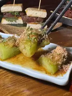 The eggplant is soft and sweet, and paired with the delicious barbecue sauce and shredded bonito, it tastes sweet and fresh.