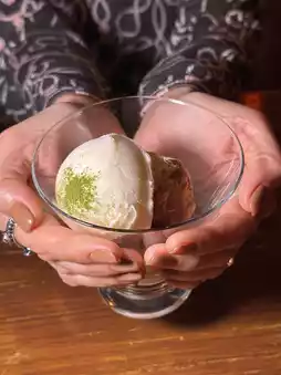 The outer layer of the sweet potato is wrapped in tempura batter, which is fragrant and crispy, while the inner sweet potato is soft and tender, and very sweet. It is perfect with the flavor of vanilla ice cream.