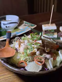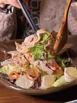 The cooked Sanyuan pork tastes fresh and delicious, paired with fresh salad and special vinegar sauce, the taste is sour and sweet, which makes people's appetite grow 👍