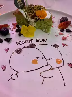I specially added writing and drawing plates of dessert, which really surprised me! The pistachio milk covered Basque cheesecake is very soft and delicious, not greasy at all, really a high standard dessert. Looking at such a beautiful dessert, the mood instantly became good.