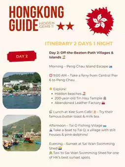 ⏰ 9:00 AM – Take a ferry from Central Pier 6 to Peng Chau.