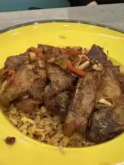 💟 Recommended 💟 Enough of the pan 😋 The portion of pepper and salt pork chop is quite large, large and thick 😌 The aroma and taste of pepper and salt are very rich, but not too salty, but also retain the juice 😍 The fried rice is very dry, and the grains are distinct, delicious 😋