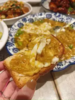 The crab powder racing crab toast is so delicious. I'm so happy after eating it!