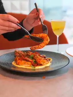 Sautéed garlic butter tiger prawns with Mediterranean spicy sauce