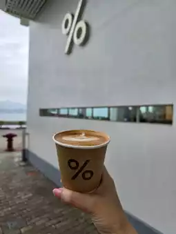 Today I went to the West Point seaside walk, came to the celebrity branch, it is located on the seaside of Kennedy Town 🏞, the two-storey % Arabica, drinking coffee here ☕️, let you sit in the unbeatable sea view, holding a cup of warm coffee in your hands, really enjoyable!