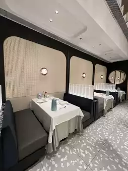 The restaurant has spacious and comfortable seats, beautiful decoration, and the staff is attentive and polite.