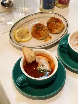 The French lobster seafood soup contains a whole shelled prawn that is smooth and chewy, and the thick lobster soup is dense and delicate, with a hint of cognac and full of freshness.