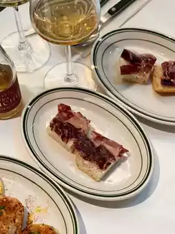 The Iberian black pork ham is shipped directly from the farm and has rich marble patterns. The fruity aroma is more intense and lasting after being air-dried for 48 months. It has a balanced and complex flavor, and the crispy toast just balances the greasiness.
