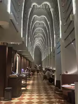 PARKSIDE has a very high ceiling and a church-like awe-inspiring decoration. The wood and beige bricks are very suitable for checking in. There are semi-circular booths, which are quite comfortable to sit in.