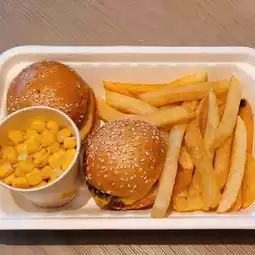 Children's meal ~ mini cheeseburger: The fries are fresh, the bread is soft, but the burger inside is very dry and a bit hard.