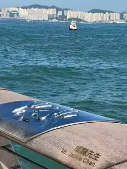 9⃣️After getting off the ferry, watch the night view of Victoria Harbour and walk along the Avenue of Stars to check out the handprints of the stars.