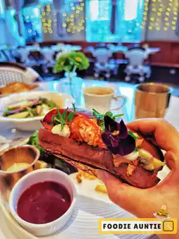🦞 The main course chose the "Signature Boston Lobster Bun", the lobster meat is fresh and sweet and bouncy, the bun is baked to crispy outside and soft inside, super delicious! Served with french fries, idyllic salad and lime mayonnaise.