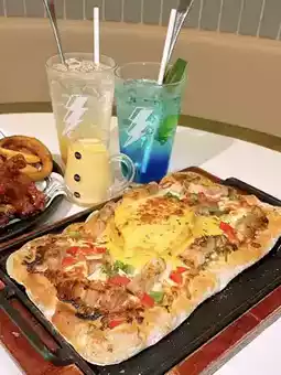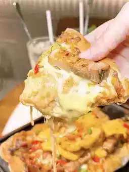 Order any Roman white pizza, can add another $ 40 upgrade volcanic lava cheese, because see the picture see the cheese is very exaggerated, so it upgraded, came to the pizza portion is quite large, unlike the usual pizza it is a rectangular size, and very thin, the top of the smoked pork loin portion is quite a lot, cheese pulling power can, the strongest is its middle of the cheese sauce 🤣
