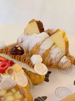 The croissant🥐 is crispy, baked until golden brown, served with Basque cake very soft, crispy on the outside and soft on the inside😋 Double enjoyment.