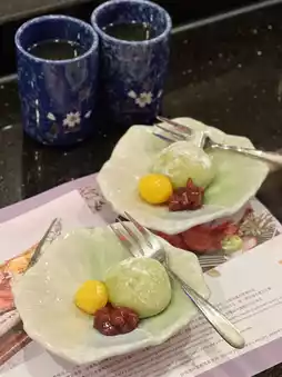 The chewy Daifuku has a dense matcha filling and smooth cream. The red beans are sweet and soft, and there is also a sweet chestnut nectar.