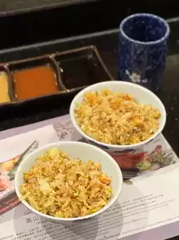The distinctly grainy fried rice is stained with golden egg drops and full of wok aroma, topped with sour and sweet plum sauce, and topped with crispy pan-fried salmon, which is tender and juicy and full of fish fat and sweetness.