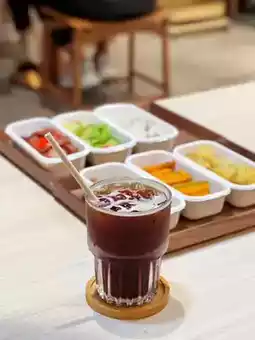 During lunch hours, three energy lunch options are available, each served with a choice of the daily sweet soup or a cup of coffee.
