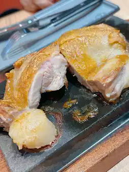 The chicken chops are thick and tasty🐔 Grilled on the hot stone slab until tender and juicy with crispy skin. Suitable for a variety of seasonings. I personally like to add garlic and Japanese soy sauce for a richer taste😋