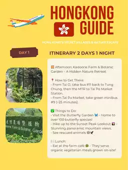 Hong Kong isn’t just a concrete jungle—it’s also home to hidden villages, lush forests, and untouched landscapes. This itinerary will take you far from the skyscrapers to explore a side of Hong Kong that most tourists never see! 🌿✨