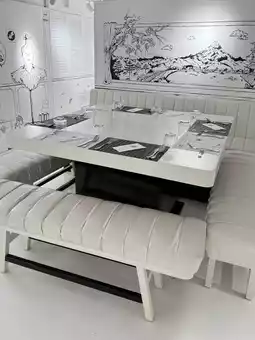 🎹 "ULURU" designed with black and white hand-painted murals is a beautiful photo restaurant.