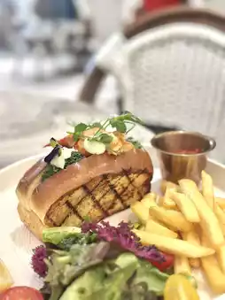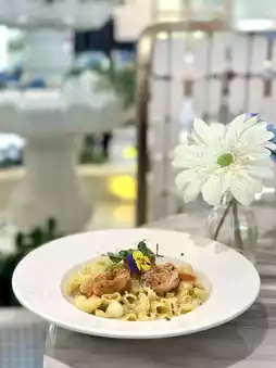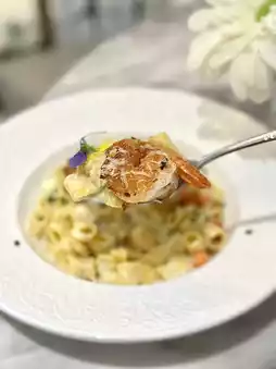 Three people, three lunch set, praised the cutlery very court style 👍🏻 Girls take pictures right 🤩 Coffee latte art excellent and rich and smooth, pork chop fried to grid appearance excellent, lobster 🦞 bun bite bite meat eat tasty, bread fluffy full of butter fragrance 👍🏻 mix berry smoothie fantastic color full of girlish heart 💖 sweet and sour good drink 🤤 ring pasta is very cute, very chewy and delicious! The sauce is creamy and less spicy with a slight garlic butter flavor, plus the crispy and bouncy shrimp is super good 😋 Finally, eat a piece of dessert tiramisu, the entrance is very surprising taste great, full of wine and coffee aroma, worth a try 👍🏻