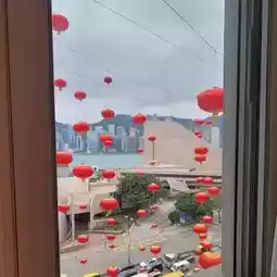 From the room overlooking Victoria Harbor + red lantern party is really beautiful