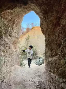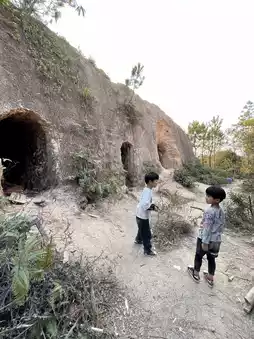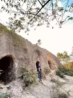 Then follow the ribbon mark for about 5 minutes, look down and you will see a dent is the location of the kiln cave, go down from the branch road, you will reach the three kiln caves ✌🏻.