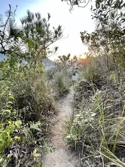 From Exit B of Tai Shui Hang Station, you will see a pavilion, walk 100 meters along Heng Tak Street, pass through the car gate on the right hand side 🚧, then walk along the concrete road for two turns, there is a mountain trail on the left please ignore (it goes to Half Au Ridge). Continue straight ahead, through the retaining walls on both sides, just across the iron fence there is a rather sloping concrete steps, don't worry, a hiker made a marijuana rope, pulling the rope up feels much safer!