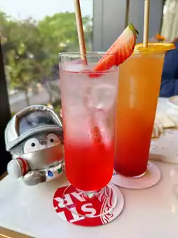 Drinks chose the beautifully shaped Pineapple lemonade and Fruit Punch🥰 appetizing and fresh, with meat skewers of seafood just as good👍