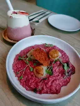 🍛Pan-fried Hokkaido scallops and beetroot risotto