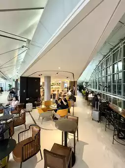 The first thing you feel after entering the lounge is the spacious space and modern design. Being located on the high floor of the airport, it offers vast views, aircraft takeoffs and even the latest landmark, the Skyfall Corridor. The seating here is comfortable and provides a good resting environment. Free Wi-Fi is available in the lounge, allowing travelers to access the Internet or handle work matters at any time.