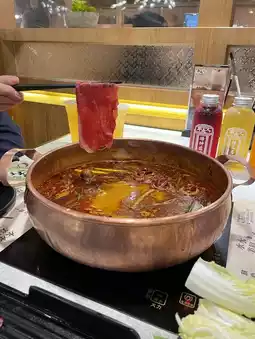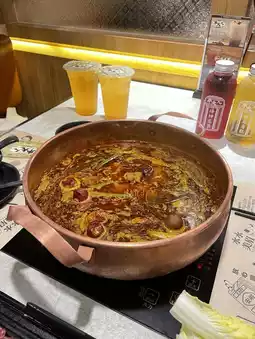 If you order the Yuen Yuen soup, you have to add $50. There are always 9 soups to choose from. I wanted to eat spicy, so I chose the Cow Lady's Secret Recipe Spicy Hot Pot. Less spicy. But actually I don't eat spicy 🤣 I think less spicy is too spicy for me, but I want to eat 😂