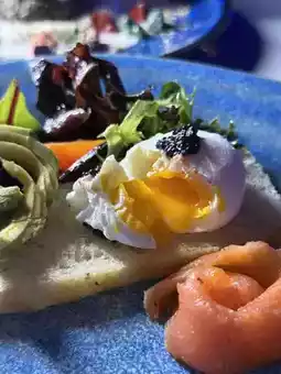 🍳 Caviar poached egg, fresh avocado, smoked salmon and homemade sourdough bread