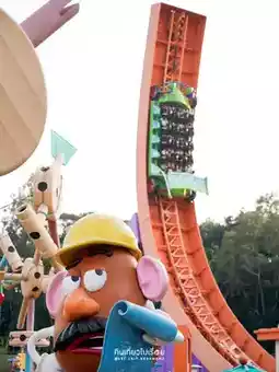 #NewYearNewTrip Toy Story Land is a very cute zone. There are giant toys, simulating the Toy Story movie. The decorations are also full of bright colors.