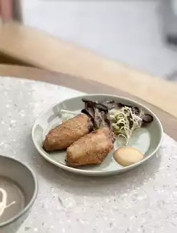 Ordered two crispy fried chicken wings with the lunch set + $ 25. The crust is crispy and the meat is tender. There is also mayonnaise on the side. It goes well with it