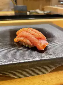 The toro sushi has three layers, the upper and bottom layer is medium toro, and the middle layer is large toro, which is extremely rich in fish oil.