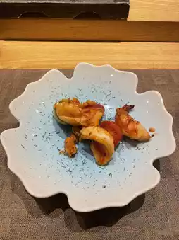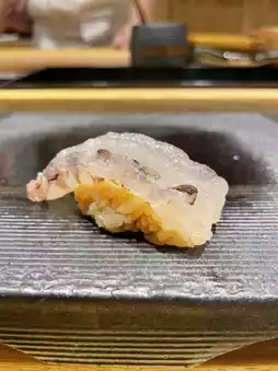The master removed the shrimp shell and intestines in front of us, the Kyushu carriage shrimp was super fresh, the shrimp meat was still shrinking when it was served, the shrimp meat was crisp and bouncy, and the addition of rock salt brought out the freshness of the shrimp meat.