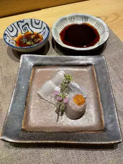 The left-mouth fish has a lighter taste, the fish is slightly tough; the left-mouth fish is wrapped in seaweed, which is sweet; the master recommends ordering mustard soy sauce or sour sauce to eat, adding some basil flowers for more floral flavor.