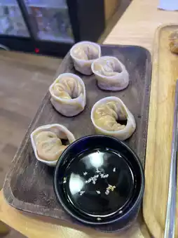 There are five very big dumplings, and the fillings inside are very rich, and you can eat the beef filling is very juicy.