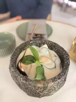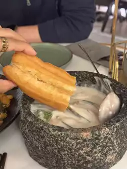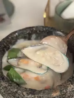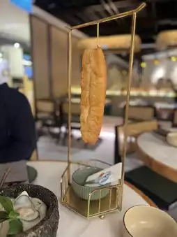 The fried dough sticks are hot and crispy, very IG-able when presented, a whole strip of fried dough sticks hanging on a golden shelf, looks exquisite, and can be handy for you to unfold with scissors, easy to eat. The stone-ground coconut laksa is full of lemongrass clove aroma and moderately sweet. Dip the fried dough sticks in coconut juice. It's delicious! The mussels were fresh and tender.