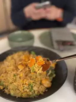 The fried rice is fragrant, full of sparse crab meat, not stingy crab paste, rice grains are distinct, each rice grain absorbs the freshness of crab meat, plus the nine-layer tower 🌿 rich aroma, and crispy lettuce, fresh shrimp, every bite is very layered, can not stop eating.
