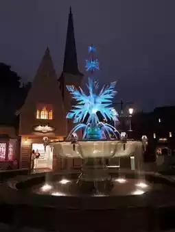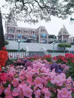 March is the month when all flowers bloom. Hong Kong Disneyland planted hydrangeas in the flower cluster in front of the Princess Castle. It was March 5th, and the flowers had begun to wither a little, but they were still very beautiful. You can shoot upwards from the angle of the flower cluster and take pictures of the castle and hydrangeas. The pavilion in front of the train station is also planted with various flowers. Using the same angle, shooting from the edge of the flowers upwards, you can also capture portraits, the station and the sea of flowers.